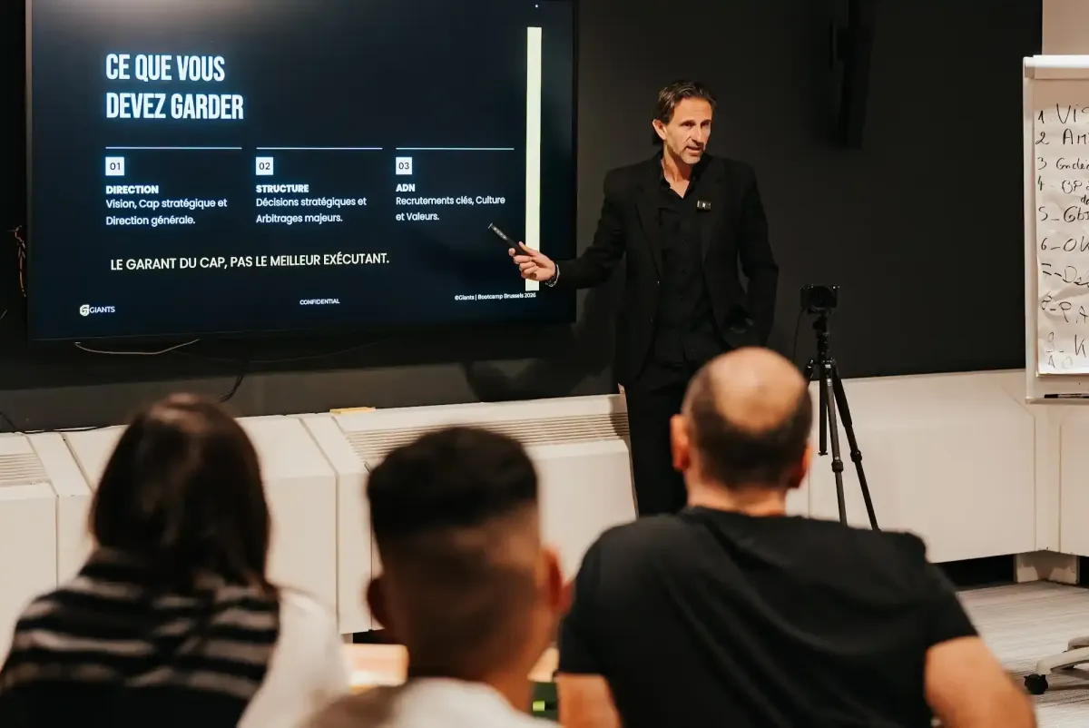 C'est un séminaire intensif où nous allons installer la méthode directement au cœur de votre entreprise. L'objectif est simple : vous repartez avec clarté et vitesse. Pas de cahier, pas de playbook générique. Vous repartez avec un plan d'accélération concret pour votre propre entreprise.